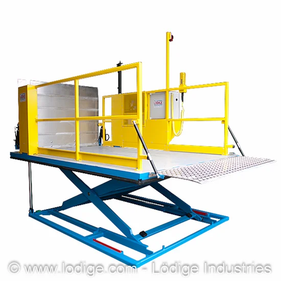With a load capacity of three tonnes and a light platform size of 170 x 270 cm, the lift table is particularly suited to the loading of goods that are transported by lorry. The connection between lift table and lorry is established via a spring-loaded bridging plate. Loading from ground to lift table occurs by means of a hydraulically operated ramp, which is easy to drive onto with a low inclination angle of 10°. A traffic light system that can be optionally integrated facilitates optimum positioning of the lorry in front of the lift table. Further options like for example roofing serving as weather protection round off the total package.