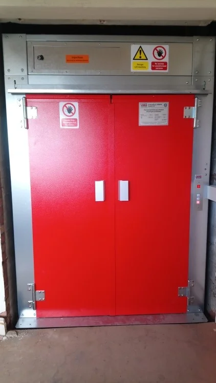 The lift used for this was the SHERPA goods only lift. The travel is 8 meters over 3 stops with a load of 2,000kg. This product can move up to 3,000 kg at a time over 18 meters and stops so is very versatile. Like all of the Lödige products, the SHERPA goods only lift is manufactured in house and installed by highly qualified engineers. This product is bespoke so is designed to suit site and project specifics. The SHERPA is a free standing goods lift so no lift shaft is required, there is also no need for a pit or motor room which saves space and builders work.