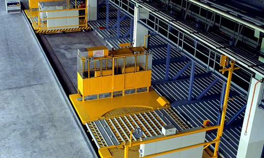 Need a reliable way to link storage decks, build & break zones, and cold storage? The Lödige Transfer Vehicle (TV) bridges critical gaps in your air freight handling system. Whether servicing ULD storage, workstations, cold zones, or various areas within the terminal, it ensures seamless horizontal transport of 5 ft or 10 ft ULDs via integrated roller conveyor decks. Transfer vehicles and hoists are central components of Lödige Lift & Run systems.