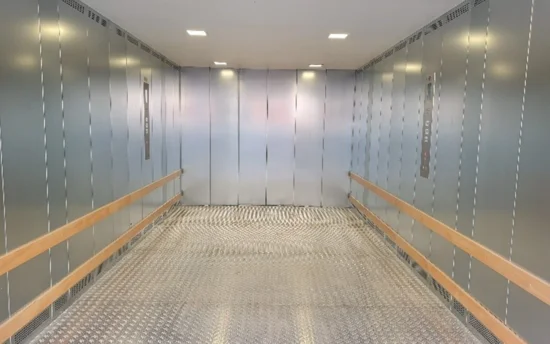 The car lifts are modern and stylish with a beautiful finish using smooth galvanized steel panels with wooden bumpers, LED fixtures, aluminium tear plate flooring and a TFT information screen control. Operation is simple and self-explanatory.